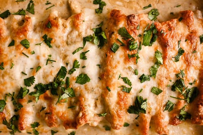 Creamy gluten free green chile chicken enchiladas made for busy weeknights, this high protein family dinner is perfect for fueling athletes before or after...