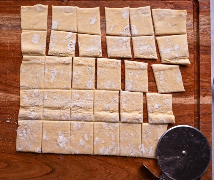 - Use a pizza cutter to quickly slice the puff pastry.