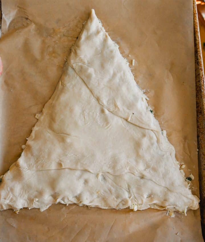 - Add the filling: Spread the spinach-artichoke filling onto one triangle, leaving a small border around the edges.