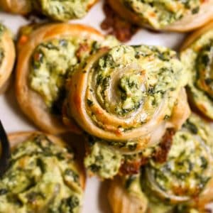 This recipe is extra fast because the spinach goes in fresh, mixing directly with cream cheese, mozzarella, and Parmesan for a creamy, flavorful filling with the perfect hint of garlic. If you love quick appetizers like my Cranberry Brie Bites or Whipped Feta with Hot Honey, these pinwheels are going to be your new go-to.