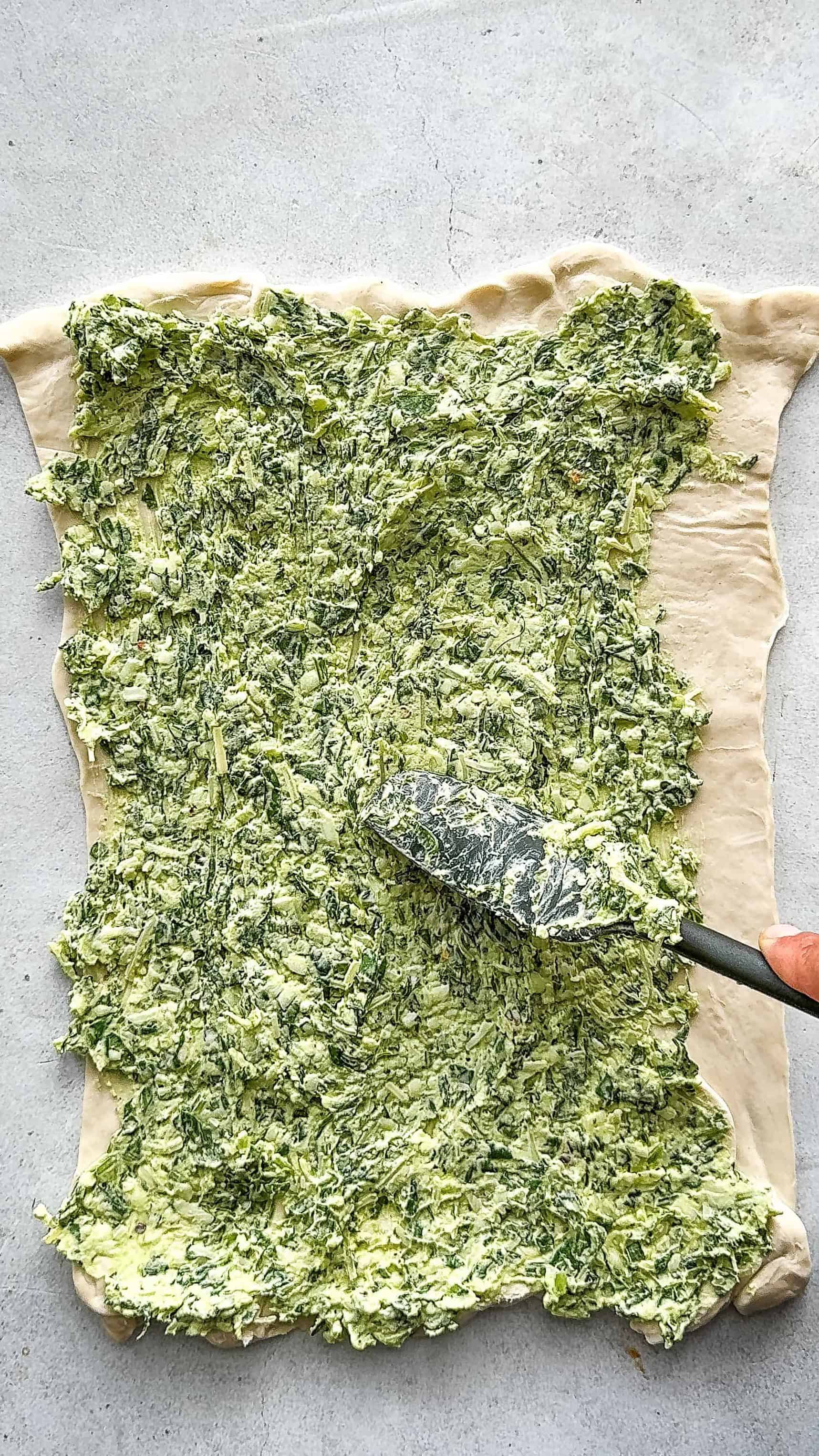Spread the spinach-cheese mixture evenly all the way to the edges.