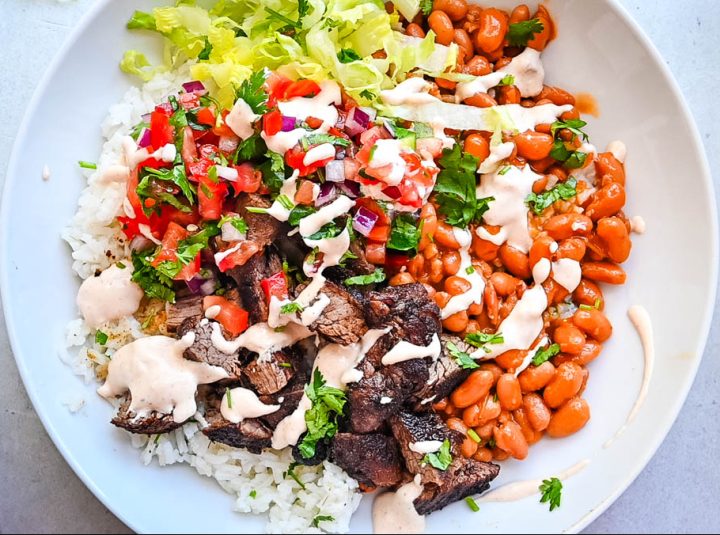 Steak burrito bowls are versatile, making life easy, especially if you do not have all the ingredients. In fact, if you happen to be reading this and only have chicken on hand, you can sub with Instant Pot Shredded Mexican Chicken, Chipotle Chicken (copycat recipe), or Mexican Orange Chipotle Chicken. Let’s say that as a busy mom of four, I am always trying to make dinner time as easy and efficient as possible!