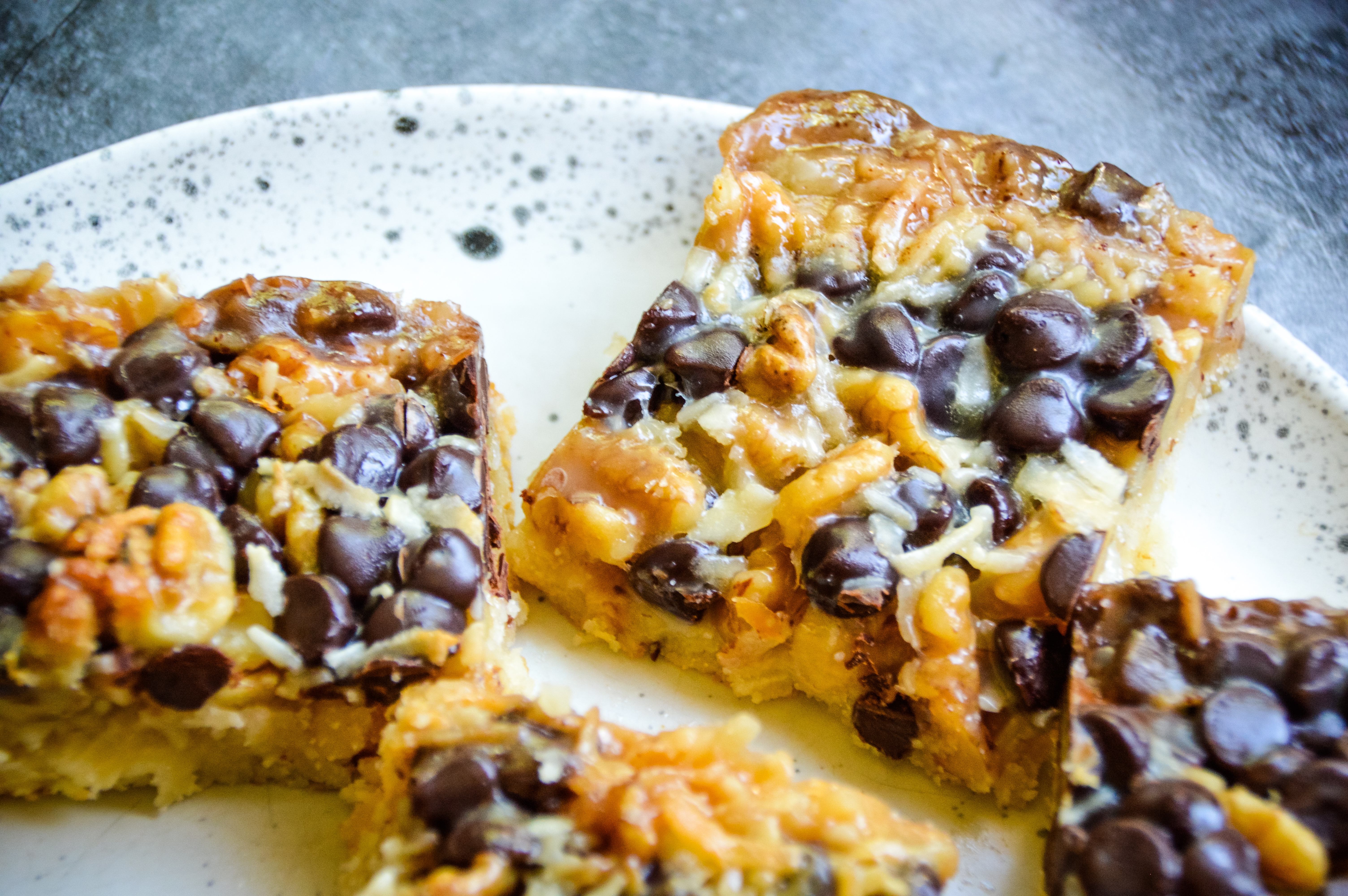 Have you ever tried a magic cookie bar? The first time I tried one was this year, haha! Why did I wait so long, these are an unbelievably delicious treat! The combination of walnuts, chocolate, and coconut all in gooey coconut condensed milk is heavenly! I used almond flour for a base to keep them gluten-free.