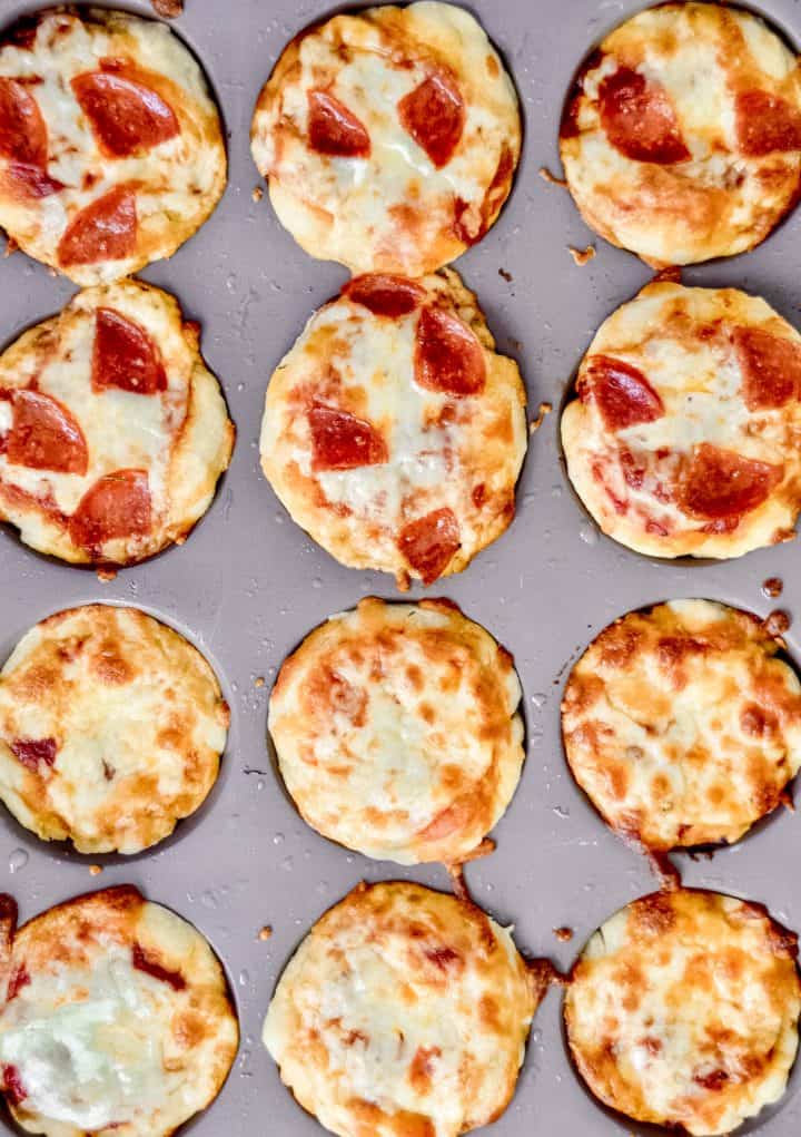 Unlike traditional pizza, these individual pizza bites bake evenly in a muffin tin, so the dough cooks through while the cheese gets melty and bubbly. They’re easy to serve, easy to store, and loved by both kids and adults.