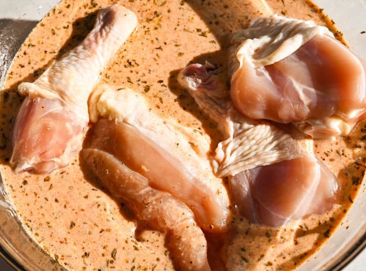Add the chicken to the bowl and turn to coat completely. Use your hands to gently work the marinade under the skin where possible.