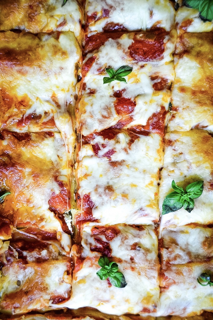 So it’s about 95 degrees out, but this mama needed lasagna, and it was totally worth turning on the oven for. Back in college, I was a deli manager at Mothers Market and Kitchen, that’s where I fell in love with spinach lasagna. The cooks would make huge trays for us to put out in the hot section and at the end of the night whatever was not eaten we got to take home to eat! I’m pretty sure rules have changed since then, haha!