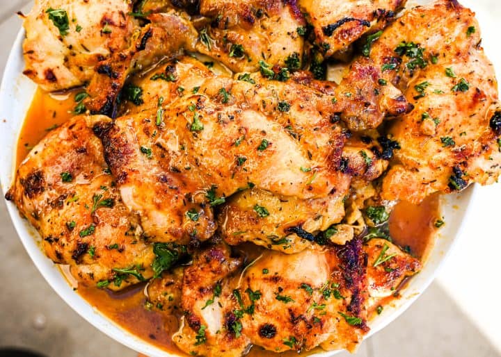 Chicken thighs stay juicy and tender even at high heat.
