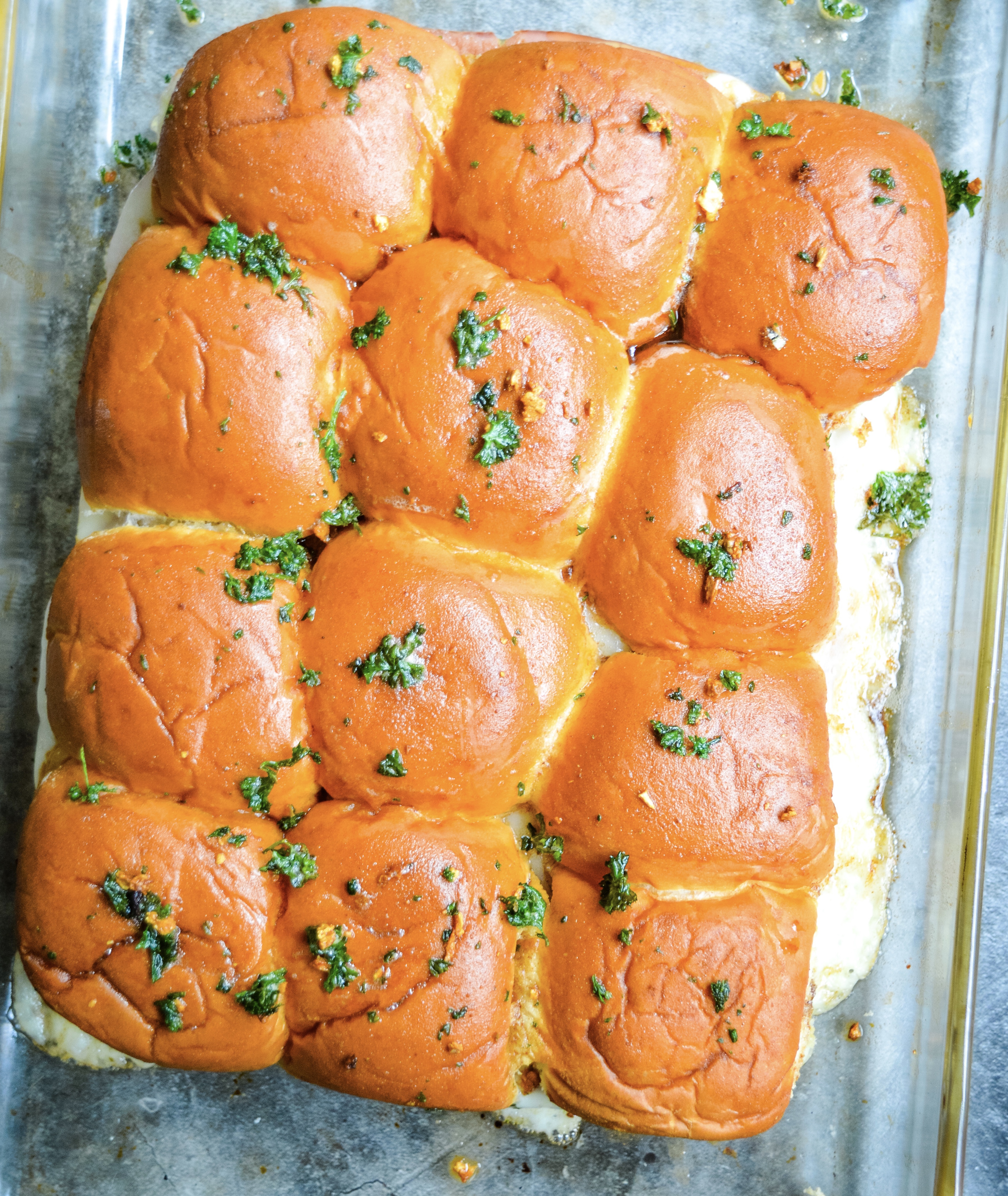 - Bake for 10 more minutes. Cool for 1 minute then cut sliders apart with a knife. Enjoy!
