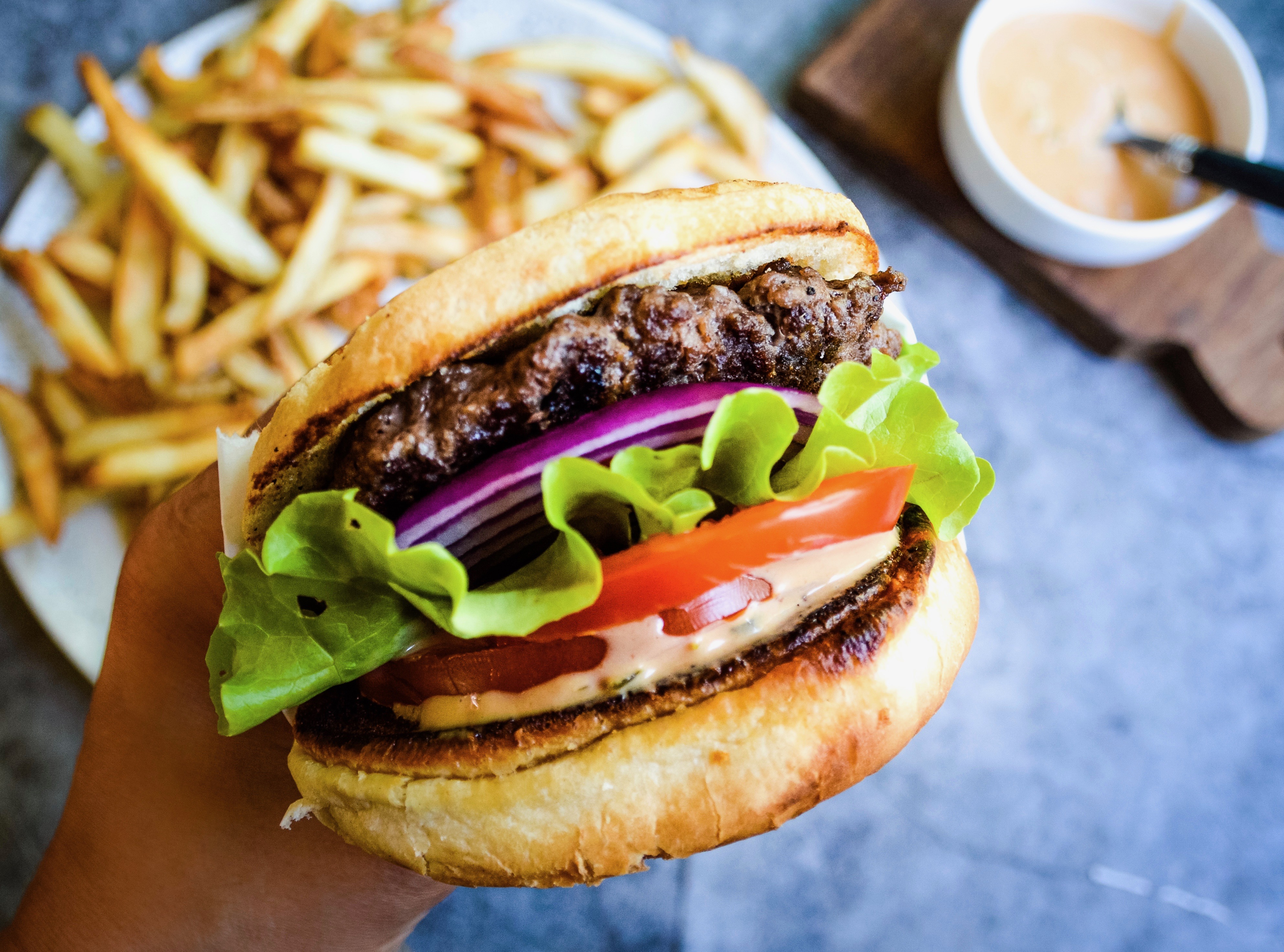 Alright, so I had this idea to do a burger backyard picnic with the family, trying to keep this quarantine a little more lively! So far during this pregnancy, I haven’t really been able to eat meat often, its a new food aversion for me. However, something about a big juicy burger sounded like heaven! Indoor burgers are so easy, juicy, and a huge hit with everyone. The sauce is in a class of its own, my five-year-old would lick bowl if I let her!