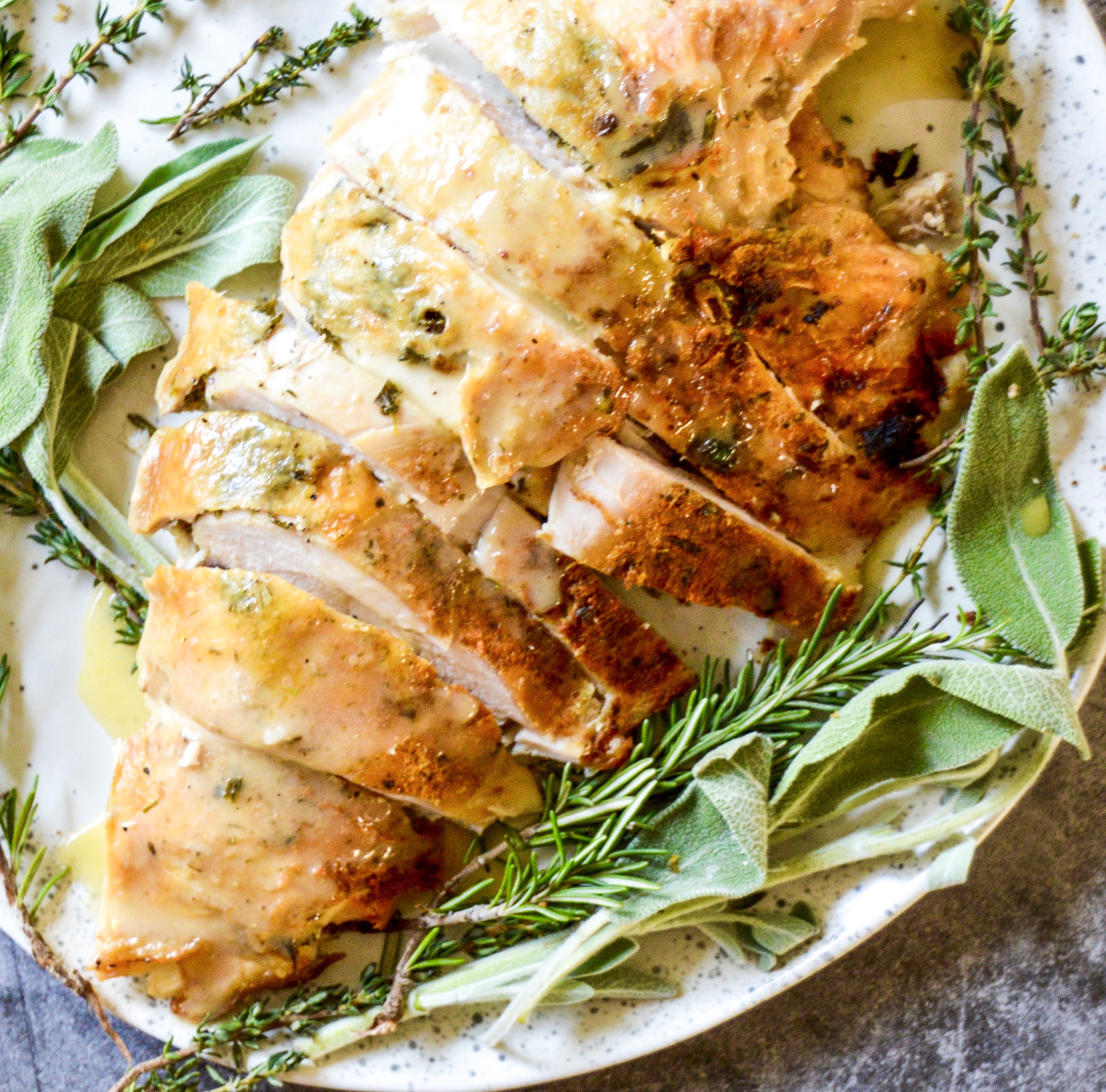 After last year’s disappointing dry breast meat and a whole lot of research slow cooker (crock/instant pot) it is to ensure supreme moistness! The unfortunate problem lots of us run into when roasting a big bird is that it doesn’t cook evenly, the dark meat takes longer than the breast meat and you’re left with only half a juicy turkey and dry breast meat! So why slow cooker, well because the moist heat keeps your turkey breast tender and juicy!