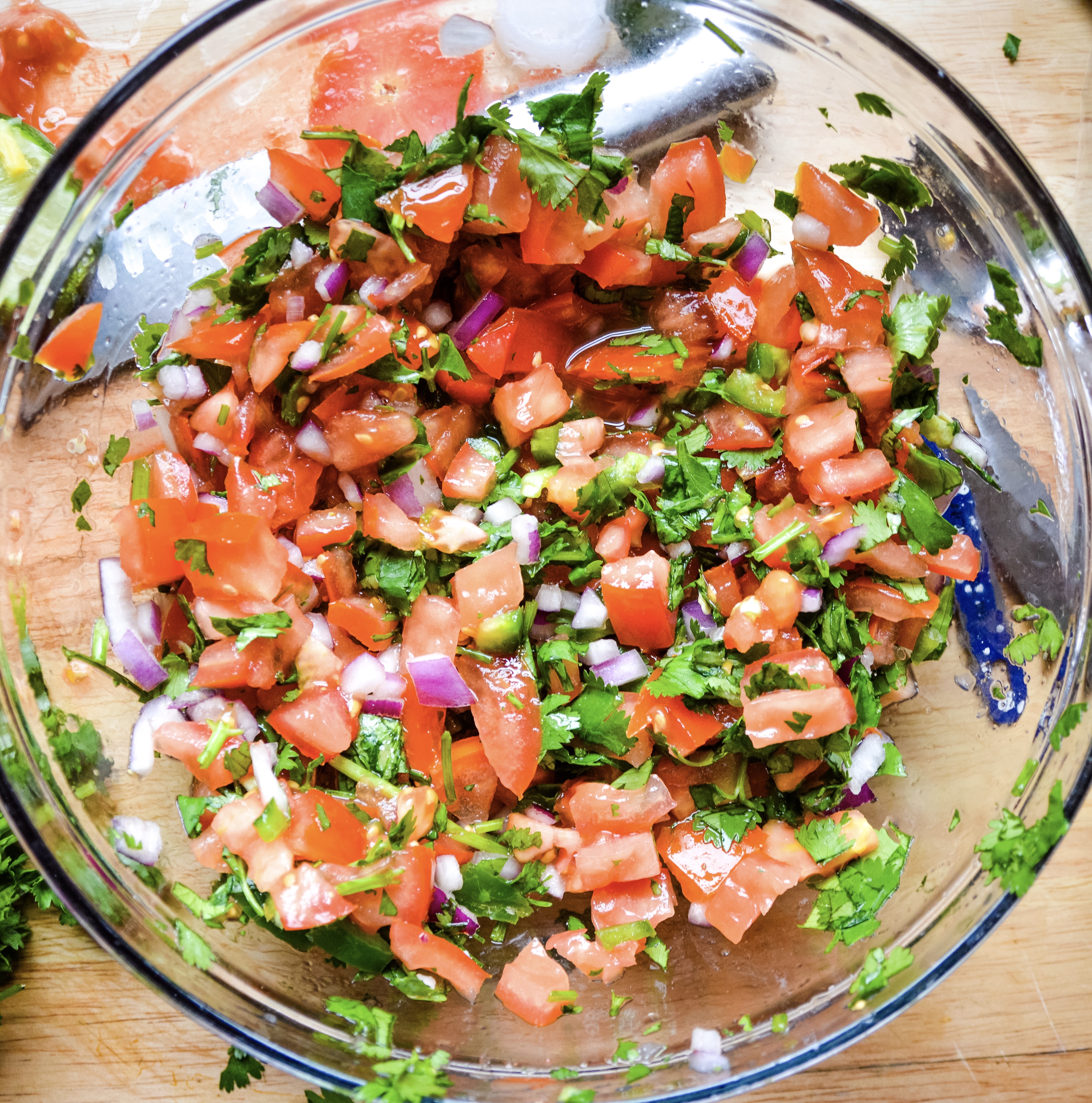 Pico de Gallo is a Mexican salsa made of fresh tomatoes, red onion, cilantro, and lime. It is the ultimate topper to your nachos, burritos, quesadillas, and tacos! Best of all its always delicious with some tortilla chips! It is so versatile and tastes great on so many dishes!