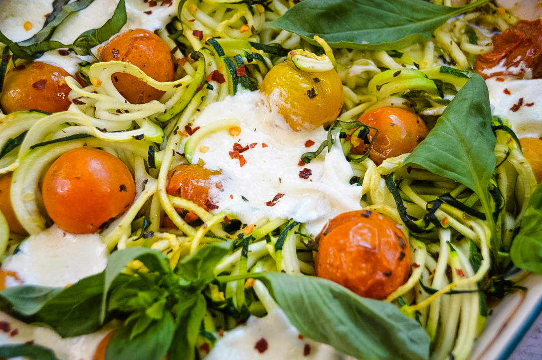 How to make Roasted Tomato and Zucchini Noodles with Burrata