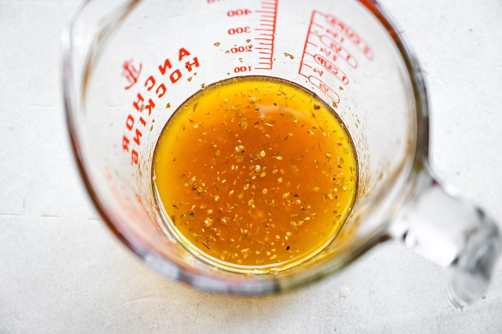Whisk together the olive oil, vinegar, garlic, oregano, salt, and pepper in a small bowl until well combined. Adjust the seasoning according to your taste.